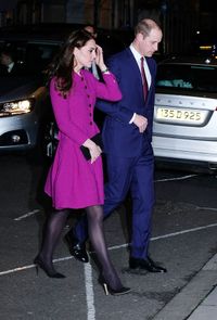 キャサリン妃が同じ日にロイヤルレッドのスーツと鮮やかなパープルのツーピース姿で現れ、「今年は年頭から大胆なカラーの連発」と絶賛されている。