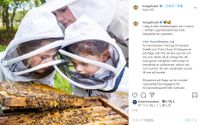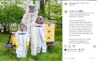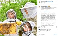 ミツバチが大量に群がる巣枠を持ち、ミツバチの大群をのぞき込む様子が、スウェーデン王室の公式Instagramでお披露目されている。