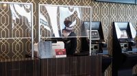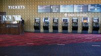 劇場ロビーの自動発券機、vit(R)は1台置きに稼働しており、床にはソーシャルディスタンスを保つためのテープが貼られている。客席は飛沫感染防止のため、チェス盤方式で前後左右1列ずつ空けて販売されている。時間をずらした入場アナウンスや、館内清掃にあてる休憩時間を長めに取るなどの措置も。