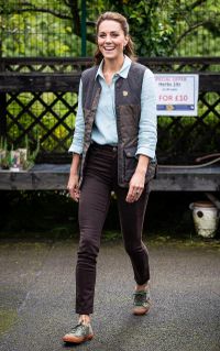ノーフォークにある園芸店「フェイクナム・ガーデンセンター」を訪問した際の様子がケンジントン宮殿の公式Twitterなどに投稿されているが、サイドをアップにしたヘアスタイルに、スウェーデン発フェールラーベンのオリーブカラーのキルトベストと、英国発イエーガーロンドンのペパーミントブルーのリネンシャツ、スペイン発マッシモ・ドゥッティの茶のスキニージーンズ、イタリア発スペルガのオリーブカラーのスニーカーに、英国発モニカヴィナダーのグリーンのイヤリングでカラーコーデ。多国籍を意識し、御用達ブランドや新旧アイテムでカジュアルにキメた。