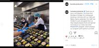 2人は、24日、久しぶりに屋外でのボランティアを再開。今回、新型コロナウイルスの感染拡大の影響で、食料の入手が困難になっている地域住民の高齢者や若者に食料を提供する目的で慈善団体Homeboy Industriesが最近立ち上げた「#FeedHOPE」プログラムをサポートするため、同団体のカフェとベーカリーを訪問し、お弁当やパン作りを手伝った。
