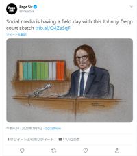しかしその後、「Daily Mail」や「CBC」などに、法廷画家が色鉛筆で描いたジョニーのスケッチ画が公開されると、「実物と比べてあまりにひどい」「こんなに頬がコケてないし」「まるでウィレム・デフォー」「法廷画家は、すぐに部屋から出なくてはならないので、与えられた少しの時間で人物のイメージを描かなくてはいけないから難しい。でもジョニデの場合は既に認知されているのだから、もう少しまともに描いてほしい」「ジョニーが見たら激怒すると思う」といったツイートが飛び交ったようだ。
