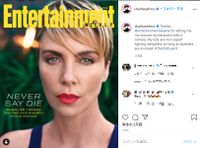 自身の公式Instagramには、黒いブラトップの上からファーを羽織ったショートカットのシャーリーズの写真と、紺のタンクトップを着たバストアップのシャーリーズの顔がズームアップされる動画が投稿されているが、動画のキャプションでは、「『Entertainment Weekly』、私の家の裏庭で撮影させてくれてありがとう。私の子どもたちは、もうライティングデザイナーのプロよ。輝くものが関わっている限りはね」とハッシュタグ付きで最新作をPR。「美しすぎる」「年を取らないね!」「完璧メイク顔がまるでマネキンレベル」といった驚きと称賛の声が寄せられている。