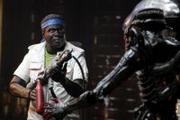 まず紹介するのは、SFホラーの金字塔『エイリアン』(79)から「エイリアン 40th アニバーサリー/ 7インチ アクションフィギュア シリーズ2: 3種セット」。このアイテムは、ブラッディ・バージョンのビッグチャップに加え、ハリー・ディーン・スタントン演じるサミュエル・ブレット、ヤフェット・コットー演じるデニス・パーカーを、それぞれ全高約18cmで立体化したアイテムだ。