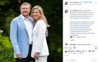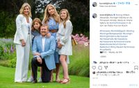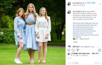 オランダ王室の公式Instagramなどには、ブルーのジャケットを着たウィレム=アレクサンダー国王、白いパンツスーツ姿のマキシマ王妃、英国発セルフポートレートのブルーのレース使いのワンピースを着たカタリナ=アマリア王女、米国発トミー・ヒルフィガーの白とブルーのストライプワンピースを着たアレクシア王女、そしてフランス発マージュの白いレース使いのワンピースを着たアリアーネ王女と、白とブルーで家族コーデした5人の仲睦まじい写真3枚が投稿されている。