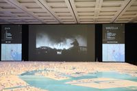 入場するとまず目の前に広がるのが、大きさ17m×22m、縮尺1/1000スケールで再現された東京都市部のジオラマ模型。その後ろにある巨大スクリーンには、「ラブライブ!」や『シン・ゴジラ』(16)、「STEINS;GATE」、『言の葉の庭』(13)の本編映像から、東京の風景を切り取ったシーンが次々と映しだされている。