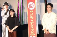 舞台挨拶では「大ヒット記念!“なにが本当でなにが嘘か”わからない話ベスト3」をテーマに、トークを繰り広げた。第1位として「コンフィデンスマンJP 英雄編!?」との文字がスクリーンに投影されると、ステージ上は「なにこれ?どういうこと?」とざわざわ。長澤が「こういうことです」とステージに登場したくす玉を割ると、「大ヒット御礼!! 映画コンフィデンスマンJP第3弾製作決定‼︎」と発表された。