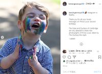 4月23日に2歳の誕生日を迎えたルイ王子のポートレート写真とともに、レインボーカラーに塗った手や手形の写真がケンジントン宮殿の公式Instagramでお披露目されたが、ジョージ王子とシャーロット王女も手形を残していたようだ。