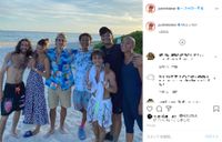 ジャスティンがマリブのレンタルコテージで友人らとバケーションを楽しんでいる様子が「Daily Mail」などに捉えられているが、昨年1月に立ち上げた自身のブランド「Drew House」の紫地で、イエローのスマイルフェイスの口元に「Drew」と入っているTシャツを着用しており、しっかり自社ブランドを宣伝。グレーのスウェットパンツとサングラスという出で立ちで、笑顔で話しているカメラ目線の様子や、妻ヘイリーをバックハグする姿などが捉えられている。