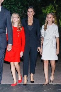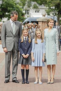 前日はスーツ姿のフェリペ6世国王の運転で登校したレオノール王女だったが、この日はレティシア王妃が運転。「Daily Mail」などにはその時の様子が捉えられているが、窓越しにしか見えないもののレティシア王妃はブルーのマスクに白い半袖のブラウスという装い。前日は助手席にレオノール王女、その後部座席にソフィア王女が座っていたが、今回はソフィア王女が助手席に座っており、入口付近で検温をする様子も捉えられている。