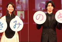 三木孝浩監督の最新作『きみの瞳(め)が問いかけている』(10月23日公開)のリモート完成報告イベントが9月15日にイイノホールで開催され、ダブル主演を務めた吉高由里子と横浜流星、三木監督が登壇。明日、24歳の誕生日を迎える横浜のために、サプライズでお祝いを決行。吉高がケーキを運び込んだほか、リモートで参加したファンがバースデーソングを贈り、横浜が「幸せです!」と笑顔を弾けさせた。