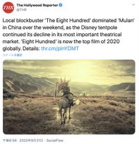 中国国内で『TENET テネット』を封じ込めるほどの驚異的なメガヒットを記録しているのは、第二次上海事変における最後の戦いとして知られる“四行倉庫の戦い”を圧倒的なスケールで描きだした中国映画『The Eight Hundred』。