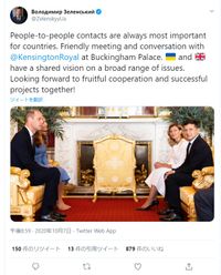 ウィリアム王子とキャサリン妃の公式Instagramと、ゼレンスキー大統領の公式Twitterで明らかになったもので、2日間の英国への外交の一環として、バッキンガム宮殿を訪問したようだ。