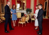キャサリン妃、バッキンガム宮殿でのコロナ禍後初外交は鉄板のブルードレス!