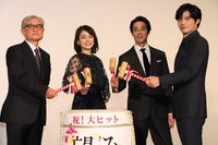 石田が「映画の話ではないことで盛り上がった。でもそれがよかった。なんでもない、ちょっと笑えるような話をしていた」と語ると、岡田は「堤さんがずっとお話をされていて、それを僕と石田さんと監督は聞いているような形」とニッコリ。「その姿を見て、僕の親父になる人はこの人なんだと思った。その横で、石田さんが“いい奥さん”のようにうなずいていた。お袋と親父を見ているような感覚だった」とその時間が役作りにも反映されたことを明かしていた。
