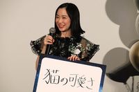 ステージでは、映画の内容にちなみ「ずっと信じていたのに間違いだったこと、勘違いだったこと」を発表することに。芦田は「猫の可愛さ」とフリップを掲げ、「飼う前にも『猫ってかわいいな』と思っていたんですが、一緒に生活してみると本当にかわいい。毎日癒されている」とニッコリ。「家に帰ると、にゃーって出迎えてくれたり。さみしがりみたいで、みんながいるところに一緒にいてくれたり。かわいくて、愛おしいです」と話す。