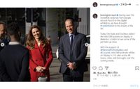 先日コロナ禍での久しぶりの公務で、エリザベス女王がマスクをしていなかったことが物議を醸したが、今回もウィリアム王子とキャサリン妃は屋外を歩いている間はマスクは着用していなかったものの、国民保健サービスの医療関係者と面会する時や移動の車内では、白地の小花柄のアマイアのマスクを着用し、白、黒、赤と3カラーでばっちりコーデした装いを見せた。
