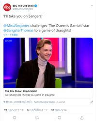 17年経った今でも、クリスマス映画の珠玉の1本として語り継がれている『ラブ・アクチュアリー』(03)。ヒュー・グラント、コリン・ファース、エマ・トンプソン、リーアム・ニーソンら英国を代表する名優たちにも引けを取らず存在感を見せていたのは、リーアムの息子役で片思いに悩むサムを演じた、トーマス・ブロディ=サングスターだ。ヒューの血縁者でもあるが、演技力と強い目力が際立っていたトーマスも、5月で30歳に。出演しているTVシリーズ「The Queen's Gambit」のプロモーションのため、英BBCの「The One Show」に出演した際の様子が、同番組の公式Twitterで公開されている。