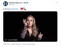 また「サタデー・ナイト・ライブ」の公式Twitterには、アクネのベルベットの上下に黒マスクという装いで、歌手のH.E.R.とコメディエンヌのケイト・マッキノンの真ん中に立ち、「私はアデルです。『サタデー・ナイト・ライブ』のホストを務めます」というプロモ動画が投稿されているが、投稿から8時間で視聴回数が395万回を突破。