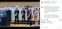 コロナ禍で小規模なイベントとなったそうだが、ヴィクトリア皇太子はポニーテールにゴールドのフープイヤリング、ハイネックのインナーにパンツとマックスマーラのベルト付きラップコート、スウェードのパンプスもクラッチバッグもオールキャメルカラーの装い。エステル王女は、前髪を上げたサイドアップのヘアスタイルに、キャメルカラーのコート、パンツとマフラーと靴は黒、赤と緑のショルダーバッグを斜め掛けという装いで、しっかり母娘コーデした装いで、式典に花を添えた。