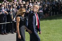 メラニア夫人、ハンサムスーツから一変し肩見せワンピでフェミニンに