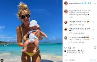 ジェームズとスペンサーの父親が所有するカリブ海のサン・バルテルミー島の5つ星ホテル「エデン・ロック・ホテルリゾート」に、2歳の息子セオドアと、初めて娘のジジを連れて旅行に出かけたヴォーグが、自身のInstagramに投稿した白い水着姿や、黄色いビキニでジジを前抱っこしている写真などが、「Daily Mail」などに掲載されている。