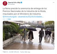 衣服が乱れるためカメラを入れないか、たまたま雨模様ではない日に公務を行っているのかは不明だが、欧州のロイヤルが雨の中で公務を行っている写真がレアな一方で、公務の回数がダントツに多いレティシア王妃とあって、2回も雨に見舞われながら公務を行った。