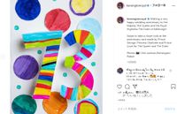 ケンジントン宮殿の公式Instagramなどには、このカードの写真もお披露目されているが、表紙は水玉模様もカラフルなら、立体的に作られた73という数字もカラフル。