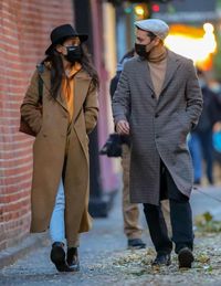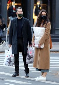 しかし、「Daily Mail」が久しぶりに2人がマンハッタンでテイクアウトのランチを買って帰る様子をキャッチ。ケイティはワイドジーンズにセーター、帽子とサングラスに黒マスク、先日エミリオとデートしていた時にも着ていたキャメルのウールコートという装い。スリは、おでこを出したポニーテールに水色のマスク、フーディの上からケイティのものとみられるオーバーサイズのGジャンを羽織り、茶のプリント入りのスカートに茶のアンクルブーツという装いで、2人で肩を組んだり、並んでテイクアウトの袋を持って歩いている様子は、とても仲が良さそう。