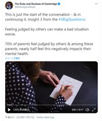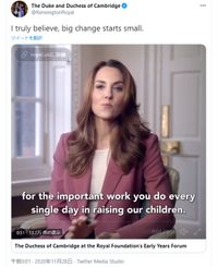 黒いインナーにパンツ、白いザラのジャケットという装いのキャサリン妃が、スピーチする様子や、調査結果のデータに所見を書き込む様子などを捉えた写真が投稿されているが、今回のリサーチ結果では、親の精神状態や教育が5歳までの子どもに与える影響の大きさと、それに対する認識の低さ(5歳までの経験が、将来のメンタルヘルスやホームレス、依存症などに影響を及ぼす恐れがあることなど)、コロナ禍で人とのつながりや取り組みがますます難しくなっていること、また、親のメンタル面にネガティブな影響をもたらしている深刻な現状などが浮き彫りになっている。キャサリン妃は、社会的な意識を高めるべく、知見1に続いて知見2は赤いGAPのセーターで、知見3はエミリア・ウィックステッドの黒地に白い水玉のワンピース、知見4は、白いインナーに茶のアレクサ・チャンのジャケットという装いで、それぞれを別々の動画で投稿している。