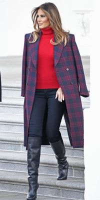 ファーストレディ初年度となった2017年、ホワイトハウスで行われたクリスマスツリーの納入式には、赤いセーターにダークレッドとグリーンのクリスマスカラーのコート。2018年は、緑と黒を基調としていかにもクリスマスっぽい、マイケル・コースの大きめのグレンチェックのコート、そして昨年は、大きな赤と白のバラがあしらわれたドルチェ&ガッバーナのド派手なコートと、イベントのテーマ性を重んじるメラニア夫人だが、今年は、 襟元がおしゃれな、白黒の千鳥格子のバレンシアガのコートで、3700ドル(約38万6000円)が半額になっていたことから一部ネットで完売したようだ。しかし、メラニア夫人が着用時にセールになっているものを選ぶのは稀で、お値段もお安めだ。