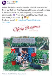 メーガン妃とヘンリー王子が、2019年からパトロンを務め、現在も個人的にサポートを行っているイギリスの動物愛護団体Mayhewの公式Twitterを通じて、クリスマスカードをお披露目した。