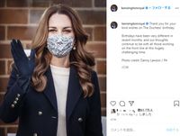 また写真も、特別に誕生日用に撮影されたものではなく、12月6日からウィリアム王子と英国弾丸ツアーを行った際に撮影されたものを使用。アイボリーのラウンドネックのニットとホブスのネイビーのロングコート、ジグソーのワイドレッグパンツにエミーロンドンのネイビーのスウェードパンプス、アマイアの小花柄のマスクに、シモーネロシャのパールのドロップイヤリングという装いで、7日にバットリーコミュニティセンターを訪れた際に、笑顔で手を振っている写真をチョイス。
