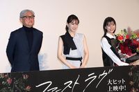 第159回直木賞を受賞した島本理生の同名小説を映画化したサスペンス・ミステリー『ファーストラヴ』の大ヒット御礼舞台挨拶が2月28日にTOHOシネマズ六本木ヒルズで開催され、北川景子、芳根京子、堤幸彦監督が登壇。ちょうどこの日、24歳の誕生日を迎えた芳根を祝って、北川から花束がプレゼントされた。かねてより「大好き」と憧れてやまない北川からのサプライズ&愛のこもったメッセージを受け取ると、芳根の瞳からはポロポロと涙が溢れだし「すごく幸せな誕生日」と大感激。思わず北川ももらい泣きするなど、劇中では壮絶な役柄を演じて涙の応酬を披露した2人が会場を温かな空気でいっぱいにした。
