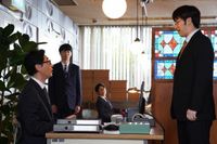 すると松也が「そうですか。石田さん」と、百田の名前をふざけて間違えると、百田が「百田です!」と合いの手を入れる。松也がすかさず「え?百田さんなの。ごめんなさい、間違えてました。新田さんだと思ってた」と悪ふざけを続けると、百田が「このやりとりを延々とやってました」と笑いながら言う。松也が「僕がその日の気分によって名前を変えて呼び、百田さんがそれにツッコむんです」と2人で笑い合う姿に、現場の様子をうかがい知ることができた。