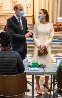 キャサリン妃、自身の挙式会場を白いコートドレスの装いで訪問