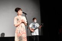 後半では仲田が、本作品のテーマソングで、満島が劇中でも歌っている沖縄民謡「かなさんどー」を、三線の生演奏にのせて披露。会場全体が仲田の美声と三線の音色に酔いしれた。