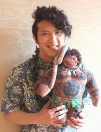 「そうか!スタートがこの映画なんてとても羨ましい」と興奮気味に語る松也。彼はモアナと交流する伝説の英雄マウイ役に声をあてた。「僕はずいぶん前からディズニー・アニメーションの声優をやりたいと言っていたので、まさに夢が叶ったという感じです。そして初めて屋比久さんの声を聞いた時は鳥肌が立ちました。『ああ、モアナはこれで大丈夫』と思いました」。