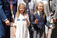 まだ幼かったレオノール王女は、グレーのスカートに紺のブレザーという制服で出席し、祖父母のカルロス1世元国王やソフィア王妃も出席していたが、今回はコロナ禍とあって、2人は欠席。両親と妹のソフィア王女のみ出席となった。