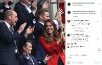 現地時間6月11日から開催されているUEFAユーロ2020(欧州選手権)ラウンド16のうち、イングランド代表VSドイツ代表の試合が英国ウェンブリー・スタジアムで29日に行われ、イングランドが2-0で勝利。イングランドサッカー協会の会長を務めるウィリアム王子と共に、キャサリン妃とジョージ王子が会場を訪れ試合を観戦した。