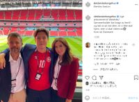 いまデンマークの試合ユニフォームは上下ともに赤く、サッカー協会のロゴマークもデンマークの国旗も赤と白。それに合わせて赤と白という装いは自然なチョイスだが、黒パンツの装いは、先月29日のイングランド代表対ドイツ代表の試合で、ザラの赤いジャケットに白いインナー、黒パンツだったキャサリン妃の装いにソックリ。
