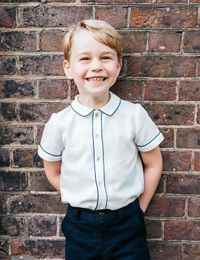 今回の写真もアンマー・ホールの邸宅の庭で、キャサリン妃によって撮影されたもので、歯を見せて笑っているジョージ王子。英国百貨店チェーン、ジョン・ルイスのネイビーとオレンジのストライプのポロシャツに、ネイビーのショートパンツという装い。相変わらず10ポンド(約1500円)だというプチプラのポロシャツは、すでに完売しているそう。