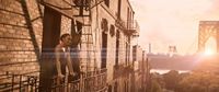 これは、半世紀以上も前、名作『ウエスト・サイド物語』(61)で、NYのストリートでダンサーが踊り出した驚きと似ている。『イン・ザ・ハイツ』も『ウエスト・サイド物語』も、NYでの移民問題にフォーカスするドラマだが、『ウエスト・サイド物語』で、アパートメントの窓の外で愛を語り合った「トゥナイト」の名シーンをアレンジしたような演出が、『イン・ザ・ハイツ』にも登場。時を超えて名作がリンクする。このシーンは、『恋愛準決勝戦』(51)でフレッド・アステアが室内の壁に、そして天井で踊るという、重力が180度回転する演出へのオマージュも与えられる。