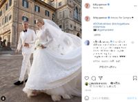 またキティは、母のヴィクトリアや故ダイアナ妃が挙式で身に着けたスペンサー家代々に伝わるティアラは身に着けず、広告塔を務めるドルチェ&ガッバーナのウェディングドレスをはじめとする計5着のドレス姿を披露。