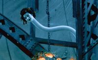 今回紹介するろくろ首は、江戸時代から様々な怪談集や随筆などに登場してきた、かなりポピュラーな妖怪。全国各地に出没し、一般的には長い首が特徴の女性である場合が多いが、男性のろくろ首の話も存在する。寝ている間に首が伸びてしまうことが多いらしく、首が伸びる以外は特に悪さはしない。しかし首が身体から分離して空に浮くタイプは人を襲うとか…。映画『妖怪百物語』(68)にも登場するなど怪談話の定番となっており、『学校の怪談2』(96)のようにコミカルに描写されることも。