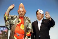 鳥取県の平井知事は気合十分に「ゲゲゲの鬼太郎」のコスプレをして登場。『妖怪大戦争 ガーディアンズ』にちなみ、神木隆之介が主演した映画『妖怪大戦争』(05)に登場する麒麟獅子について「麒麟獅子は、鳥取県の伝統芸能でありまして、日本遺産になっています」とアピール。