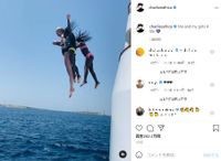 またInstagramには、水着姿のセロンが、娘たちと手をつないでヨットから海に飛び込む動画も投稿されており、楽しいひと時を過ごしたようだ。