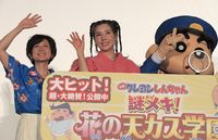 『映画クレヨンしんちゃん 謎メキ!花の天カス学園』の大ヒット御礼舞台挨拶が8月12日にTOHOシネマズ日比谷で開催され、ゲスト声優を務めた仲里依紗、チョコレートプラネット(長田庄平&松尾駿)、しんのすけの声を務める小林由美子が登壇。親への感謝や、自身の子育てについて語った。