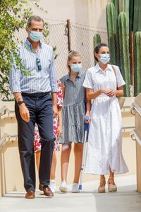 スペインのフェリペ6世とレティシア王妃、2人娘のレオノール王女(15)とソフィア王女(14)一家が、毎年恒例、マジョルカ島でのバカンスを堪能。最近は着回しが多かったレティシア王妃だが、コロナ禍で経済を活性化させる狙いもあってか、今回公の場に現れた際に着ていた4着のワンピースは、すべてスペイン発の新しいアイテムを意識したようだ。