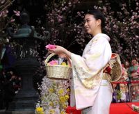 野村萬斎ら、春の花咲く京都・六角堂でヒット祈願&投げ餅!「身の引き締まる思い」